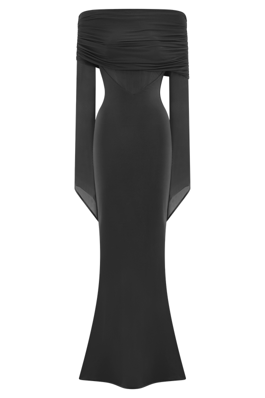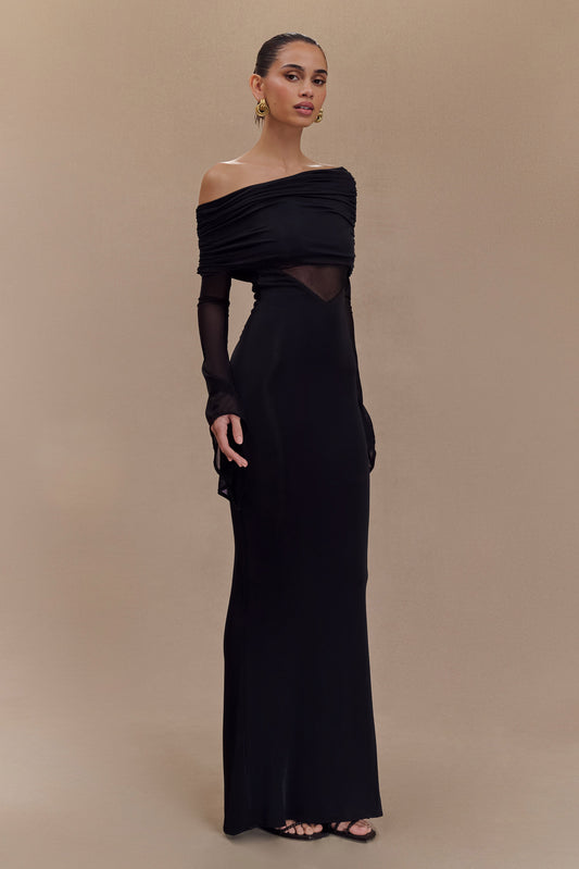 Kaitlin One Shoulder Slinky And Mesh Maxi Dress - Black