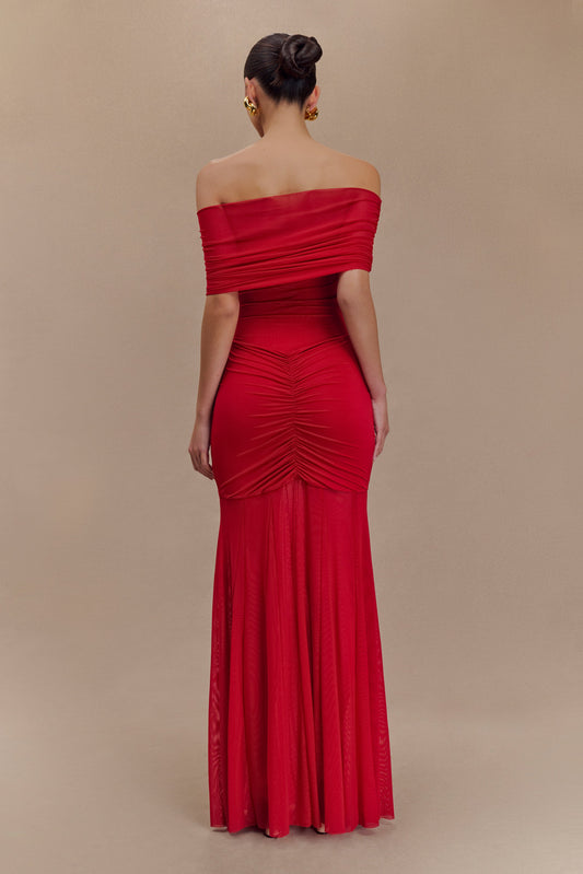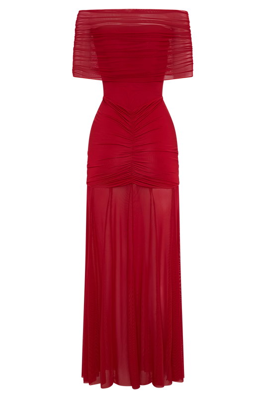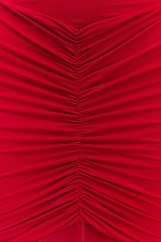 Mattea Slinky And Mesh Mini Dress With Scarf - Red