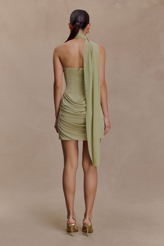 Mattea Slinky And Mesh Mini Dress With Scarf - Sage