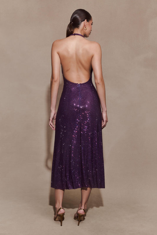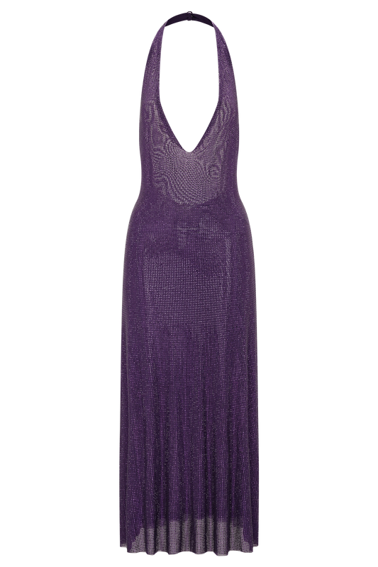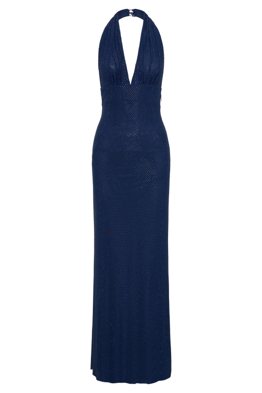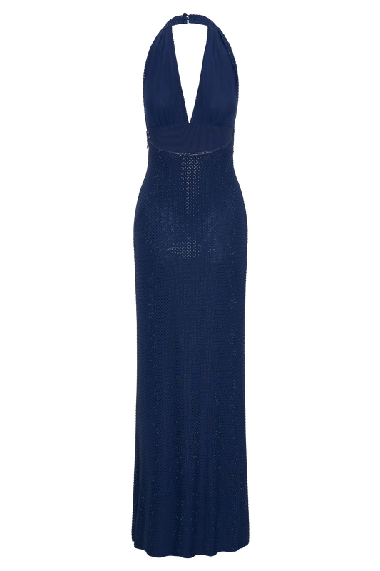 Harriet Halter Neck Diamante Maxi Dress - Sandy Gold