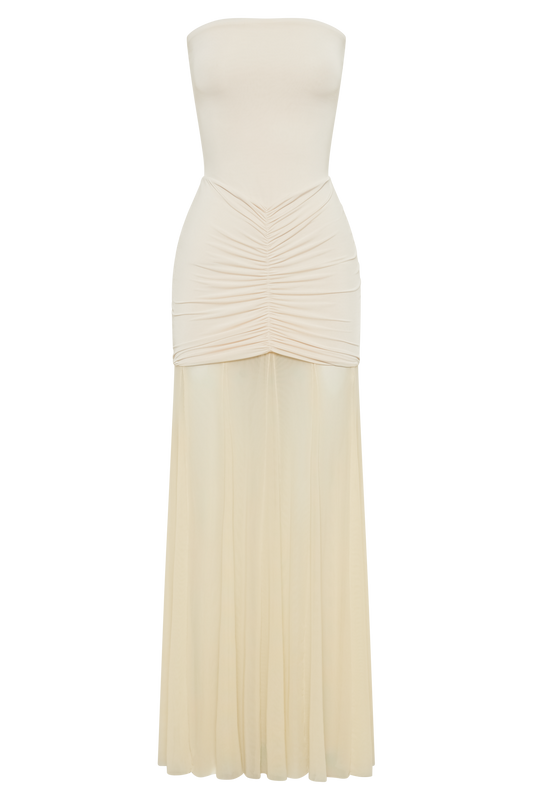 Amaya Strapless Chiffon Maxi Dress - Green Fluid Reverie Print