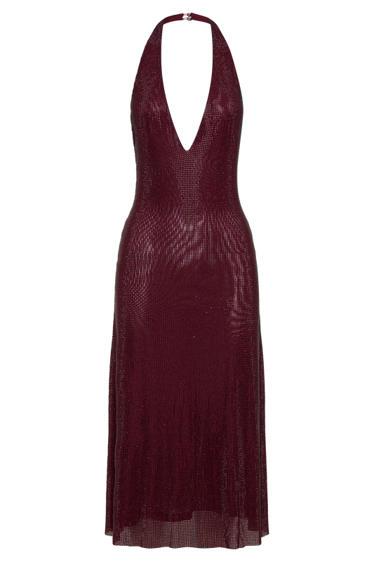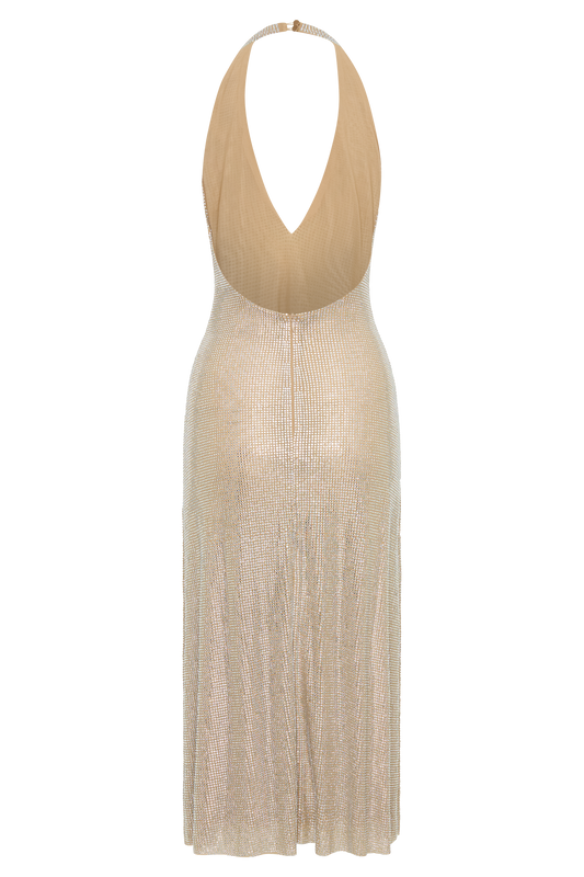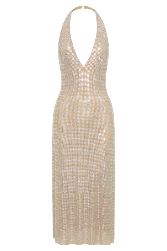 Halter Neck Diamante Maxi Dress - Sandy Gold