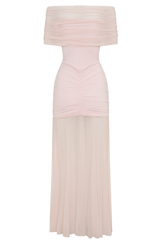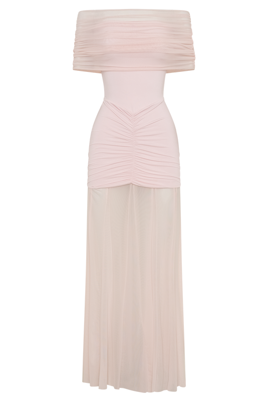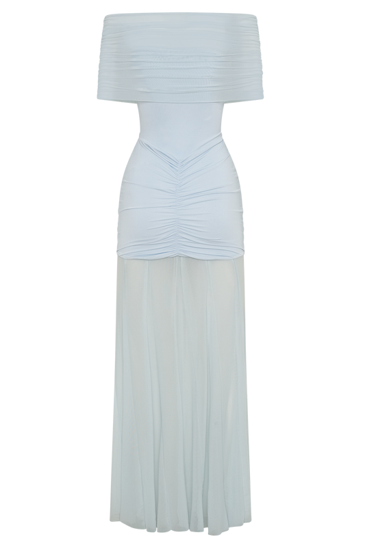 One Shoulder Slinky And Mesh Maxi Dress - Black