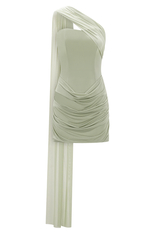 Slinky And Mesh Mini Dress With Scarf - Sage