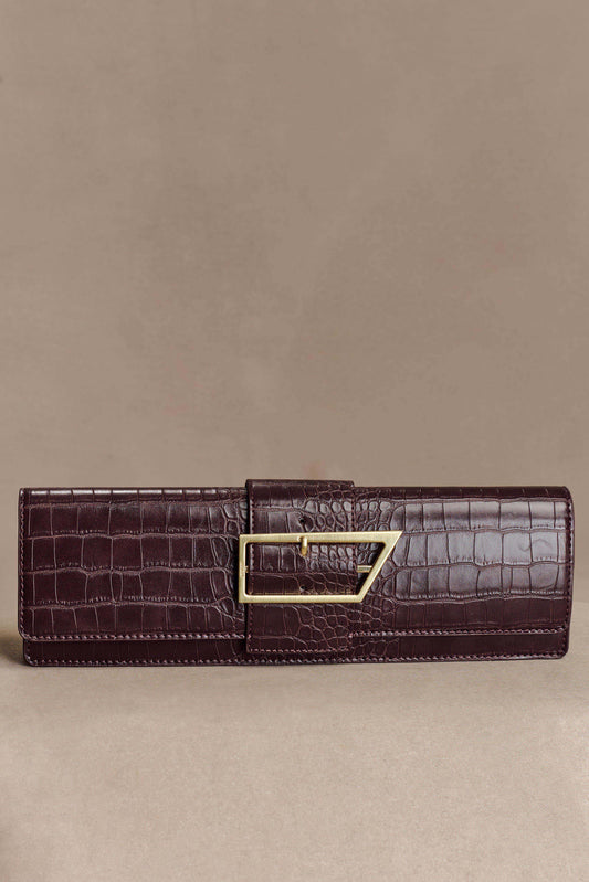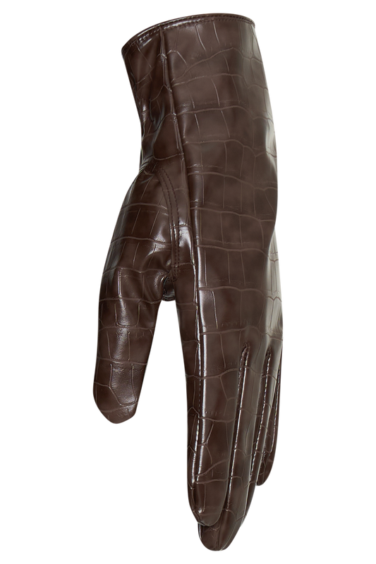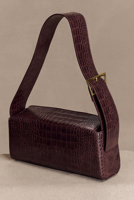 Maria Faux Leather Crocodile Shoulder Bag - Chocolate