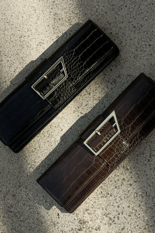 Faux Leather Crocodile Shoulder Bag - Chocolate