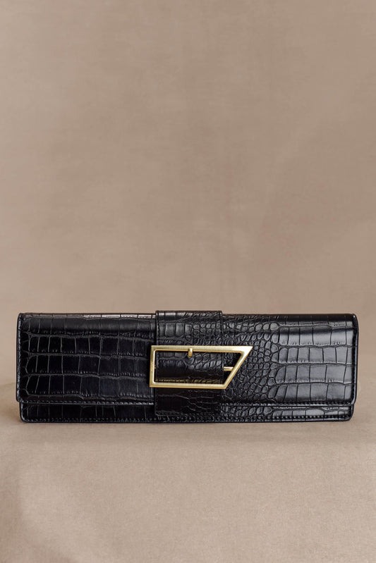 Maria Faux Leather Crocodile Shoulder Bag - Chocolate