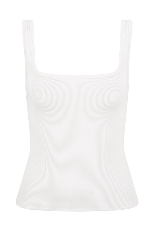 Aisling Ribbed Square Neck Sleeveless Top - Ivory