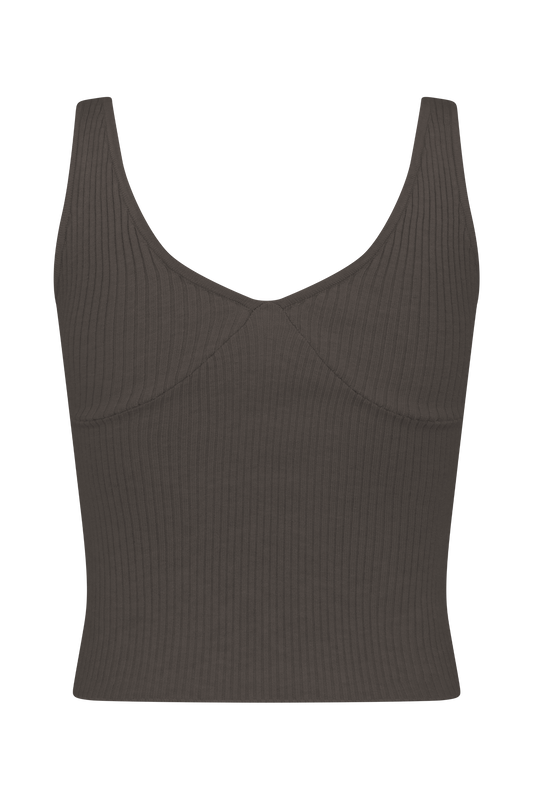 Natalya Ribbed Knit Cami Top - Dark Chocolate