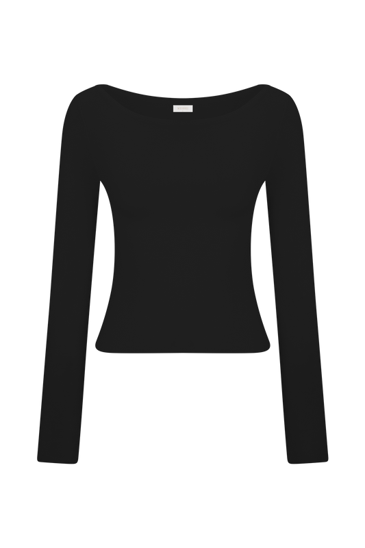 Paedyn Merino Wool Ribbed Long Sleeve Top - Black