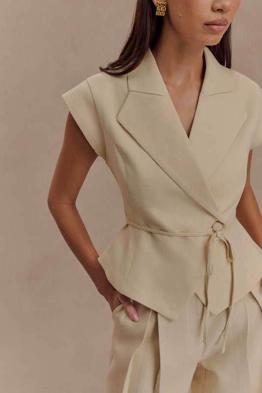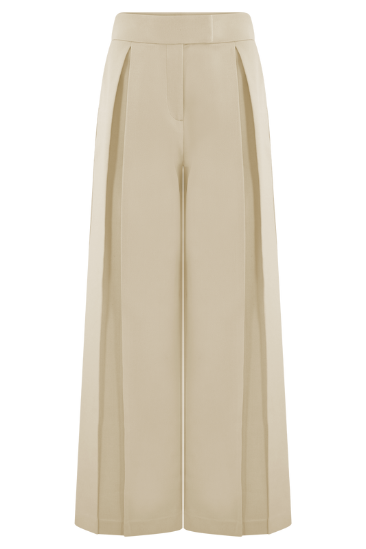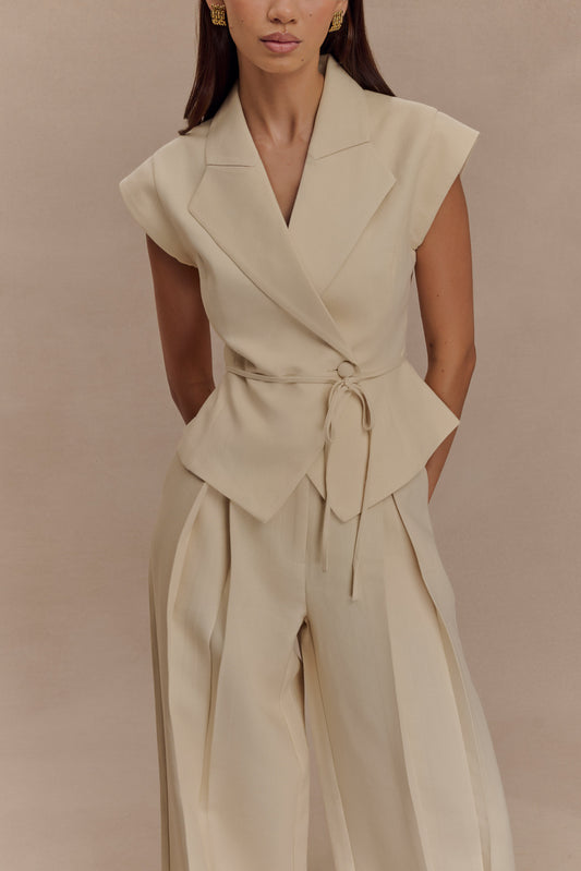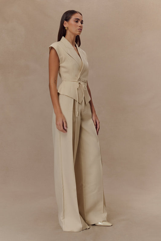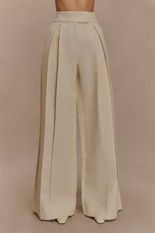 Raya Mid Rise Wide Leg Linen Pant - Natural Beige