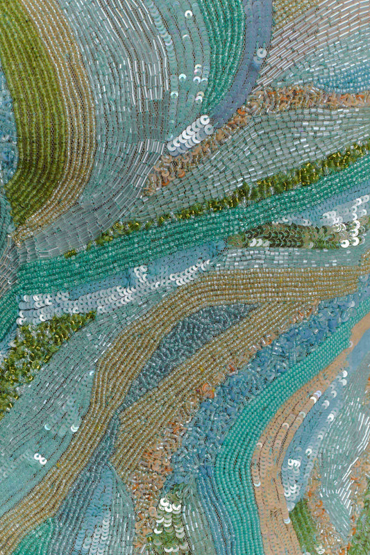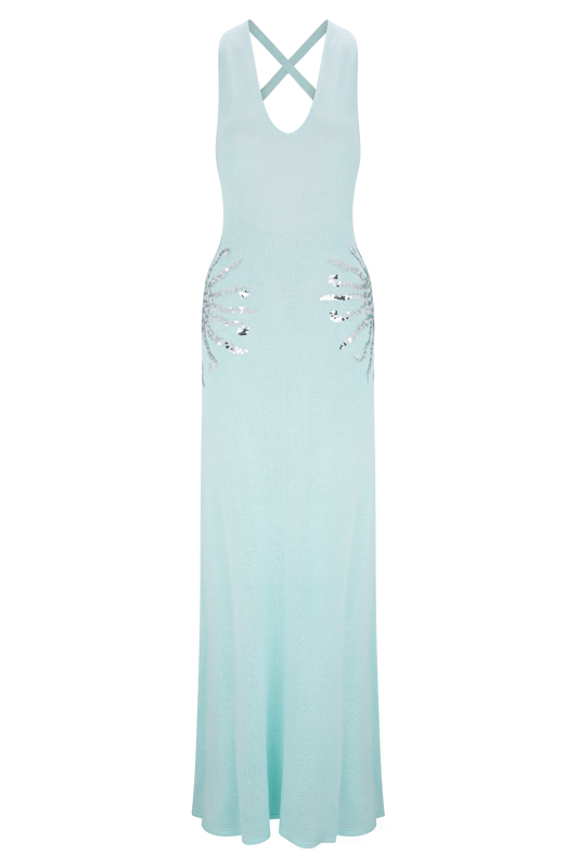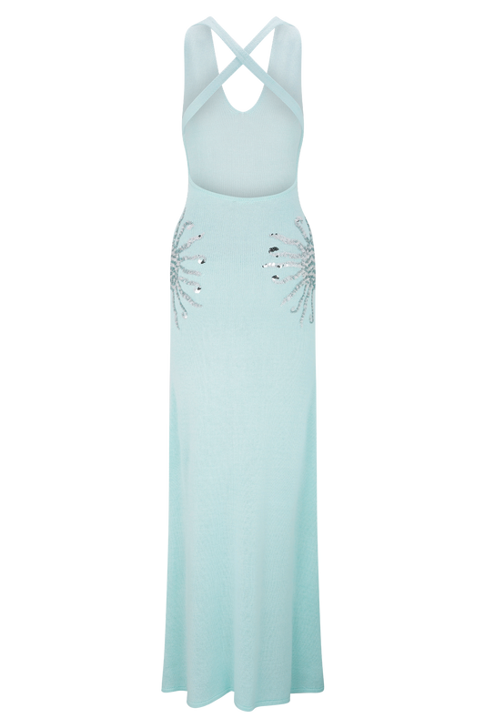 Eloise Hand Beaded Mini Dress - Blue Swirl Print