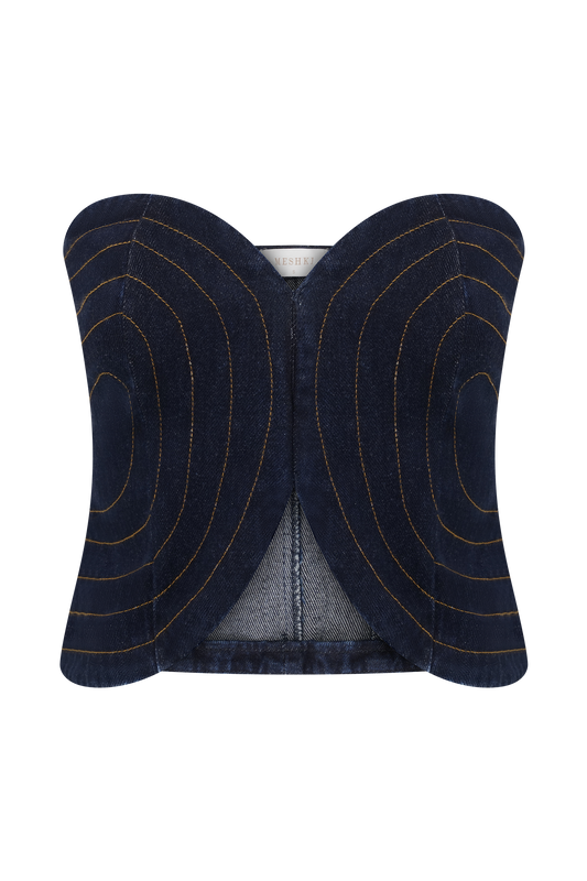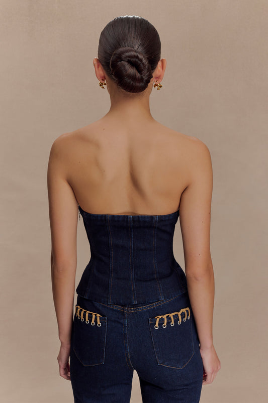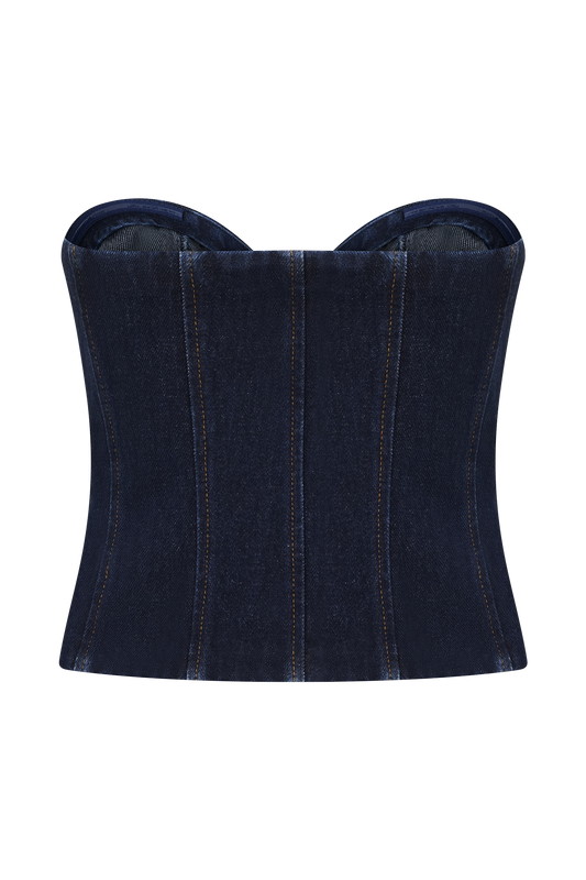 Tully Strapless Topstitch Denim Top - Indigo Blue