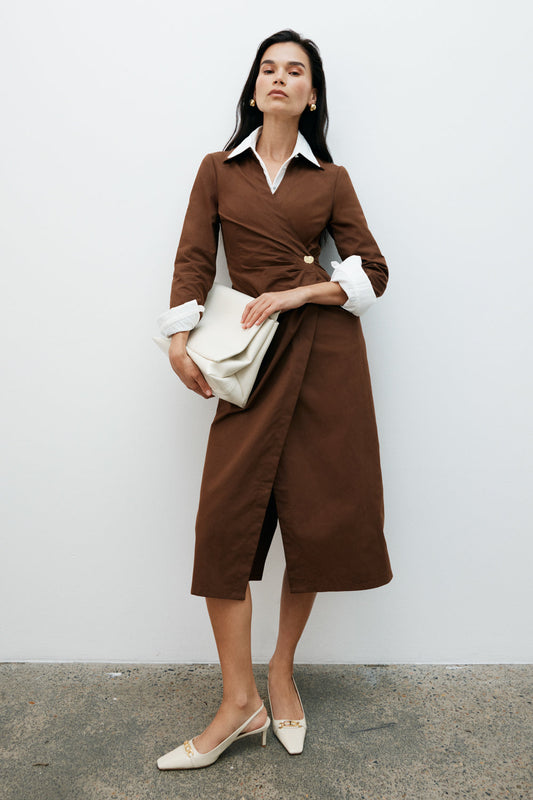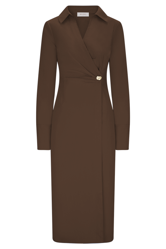 Mikaila Asymmetric Shirt Dress - Dark Chocolate