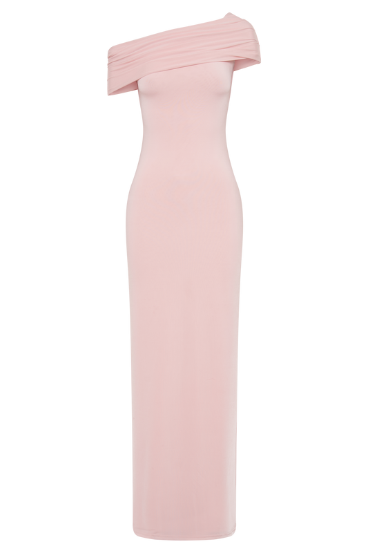 Cassandra Off Shoulder Slinky Maxi Dress - Pale Pink