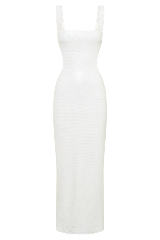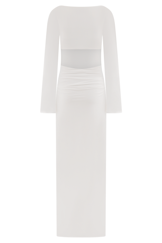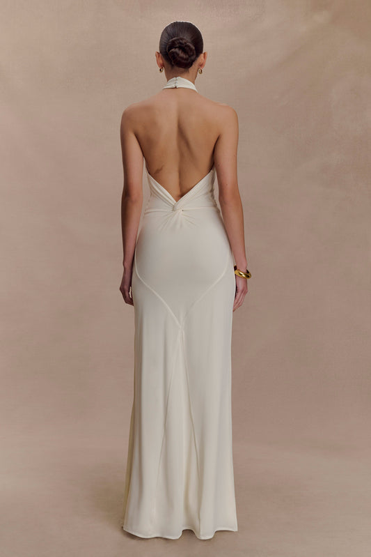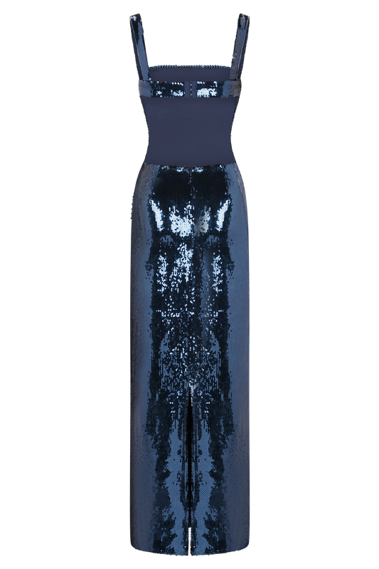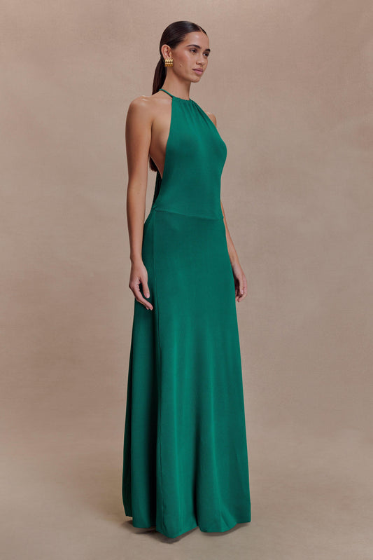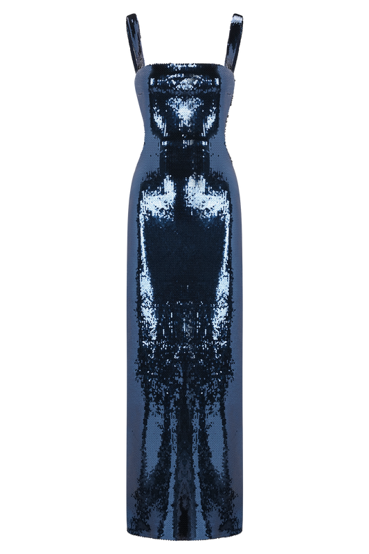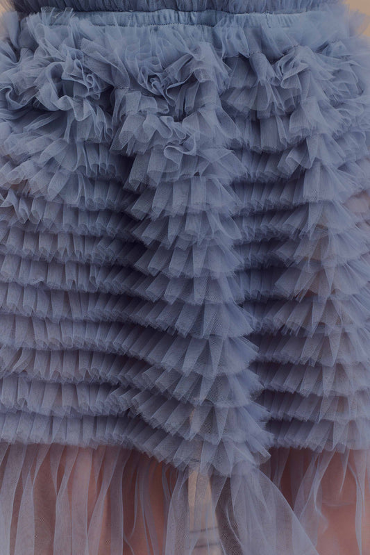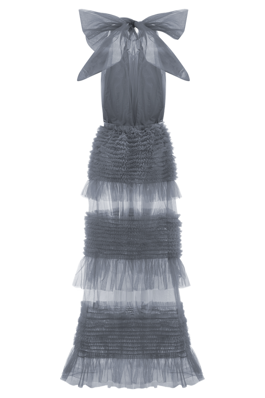 Minka Mesh Ruffle Halter Maxi Dress - Dusty Blue