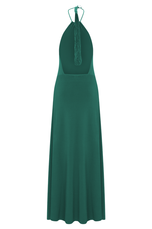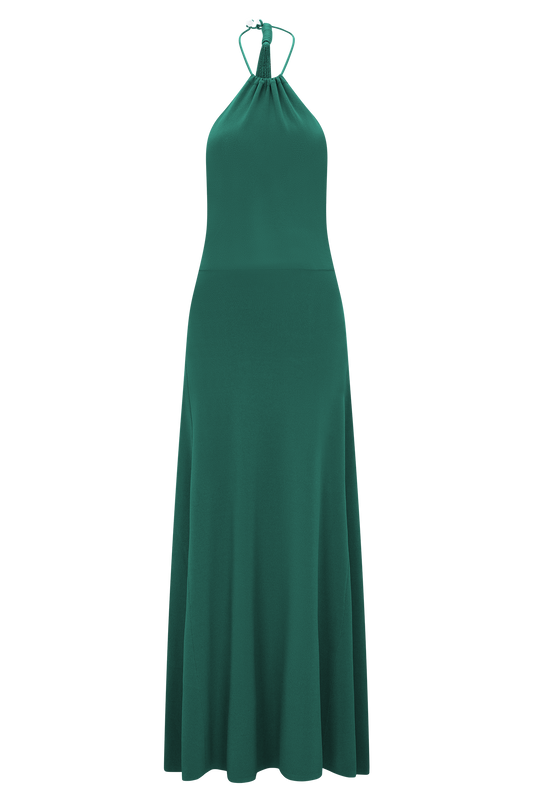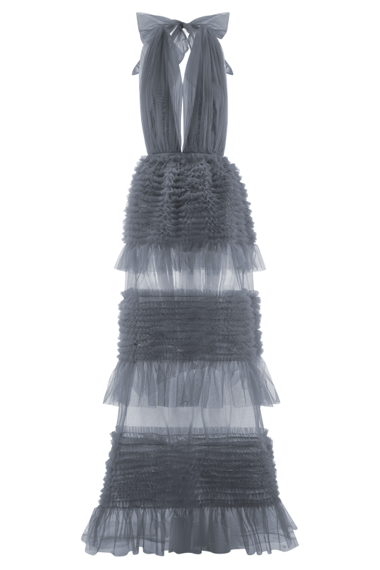 Mesh Ruffle Halter Maxi Dress - Dusty Blue