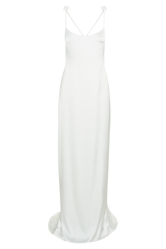 Kailey Low Back Maxi Dress With Detachable Bow Train - White