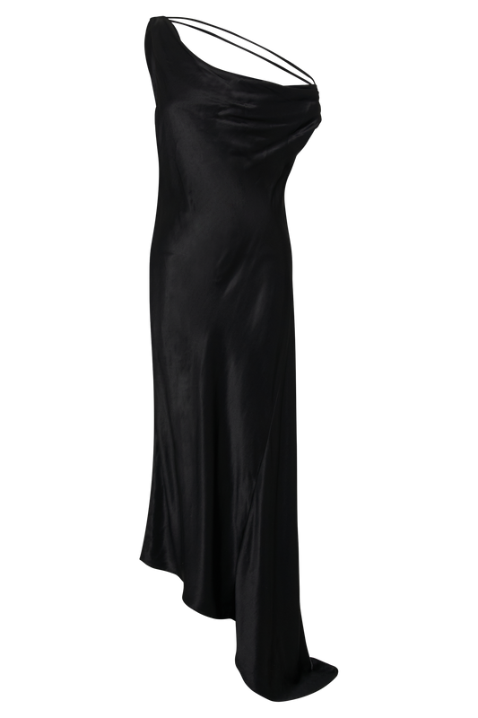 Yvette Slip Maxi Dress With Asymmetrical Hem - Black