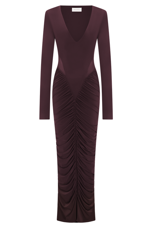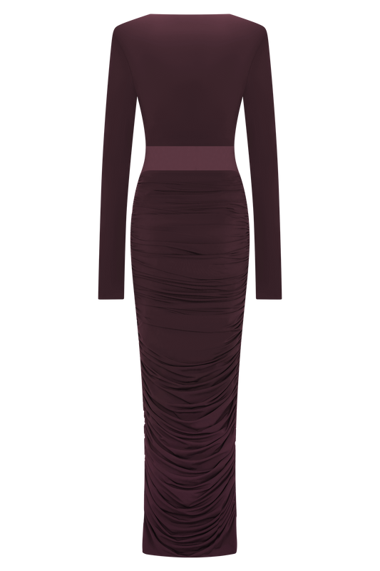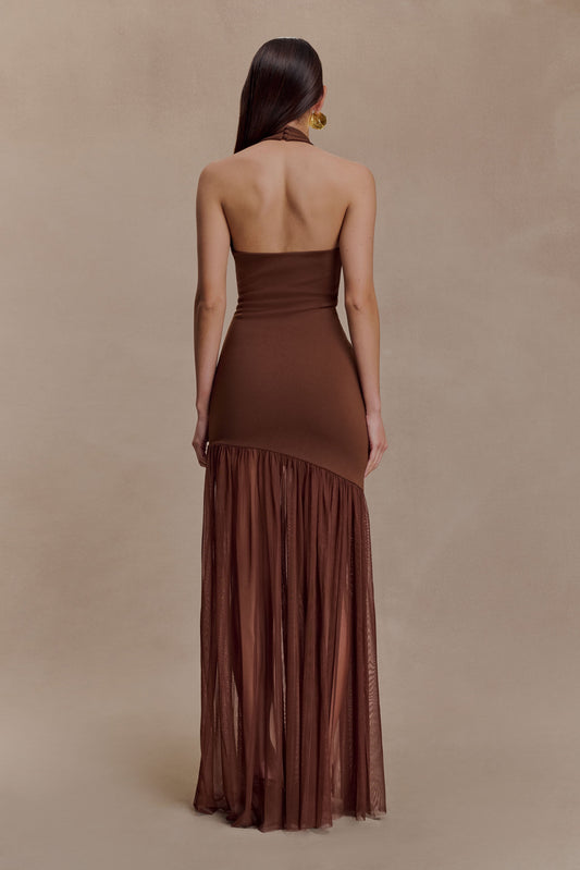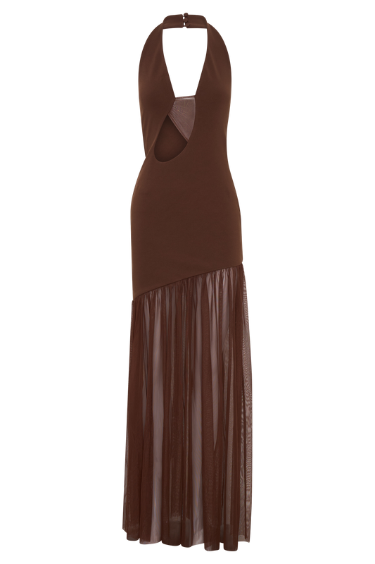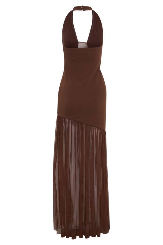 Aubree Crepe And Mesh Maxi Dress - Chocolate/Mocha