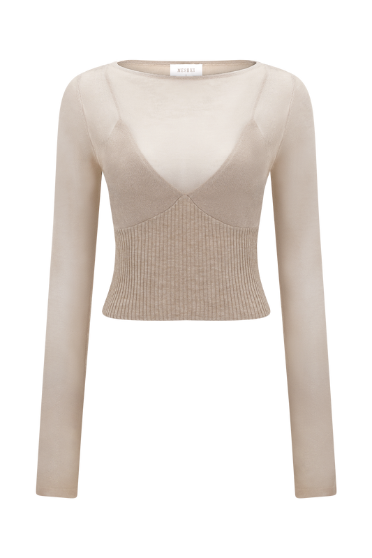 Asymmetrical Neckline Knit Top - Dark Chocolate