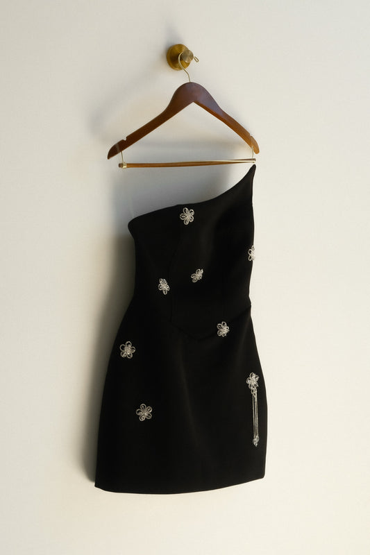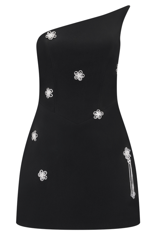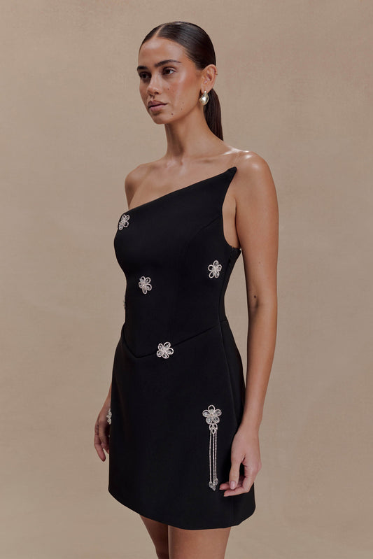 Liva Strapless Diamante Floral Trim Mini Dress - Black