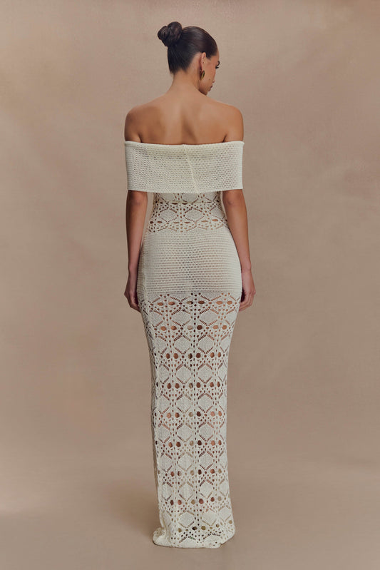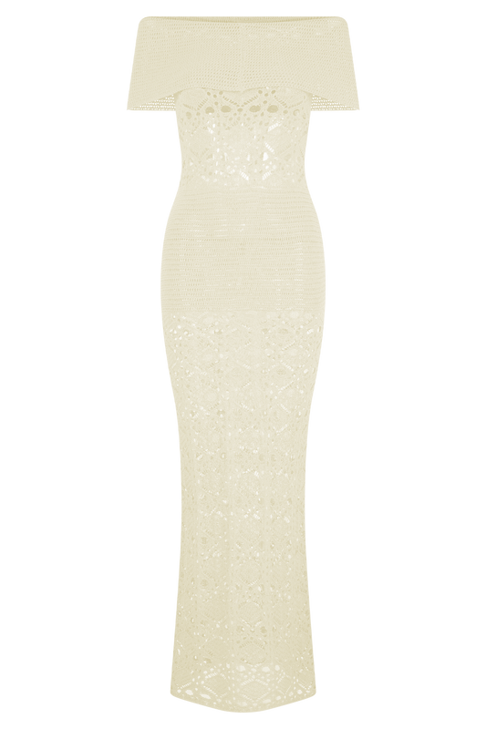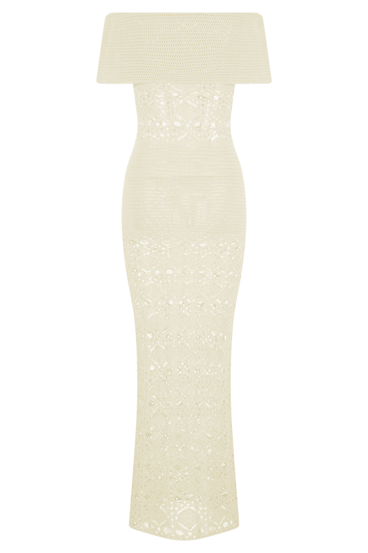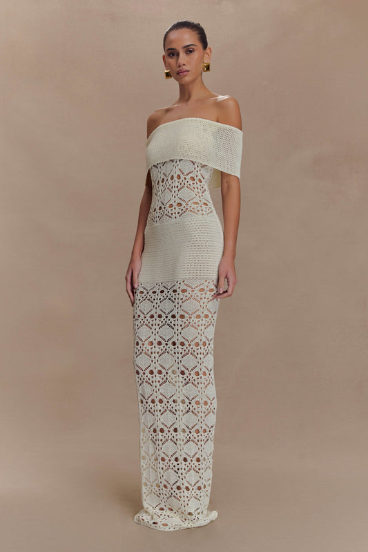 Solstice Off Shoulder Crochet Knit Maxi Dress - Ivory