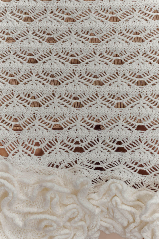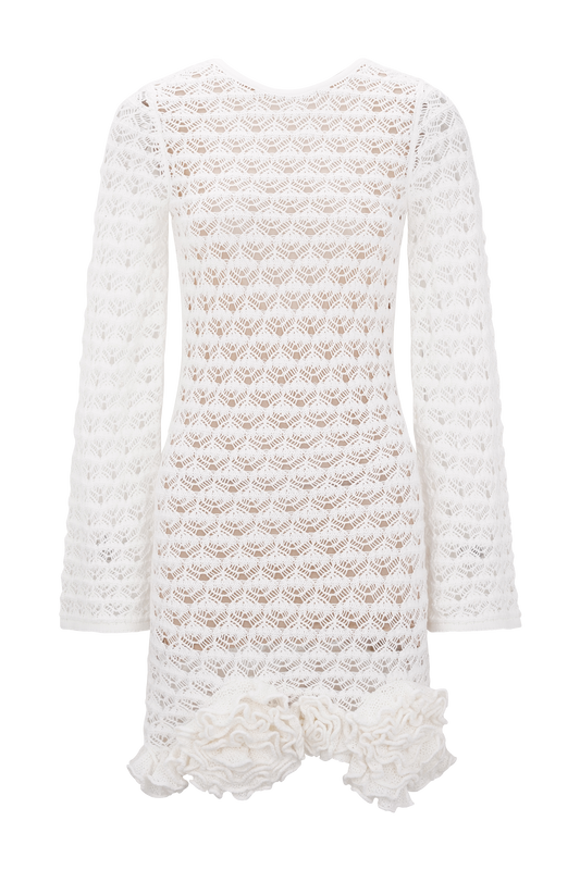 Ruffle Crochet Mini Dress - Ivory
