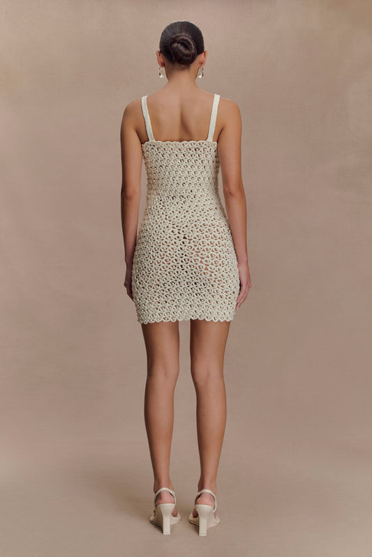 Vanessa Hand Crochet Pearl Mini Dress - Ivory