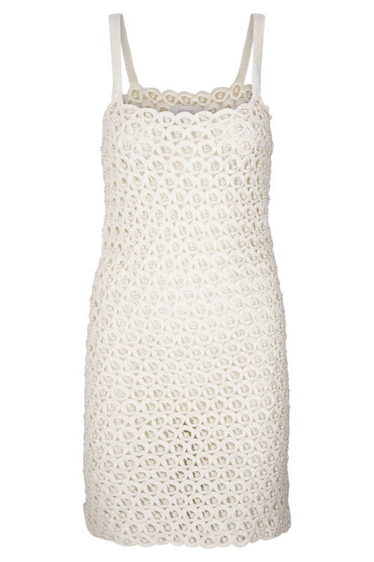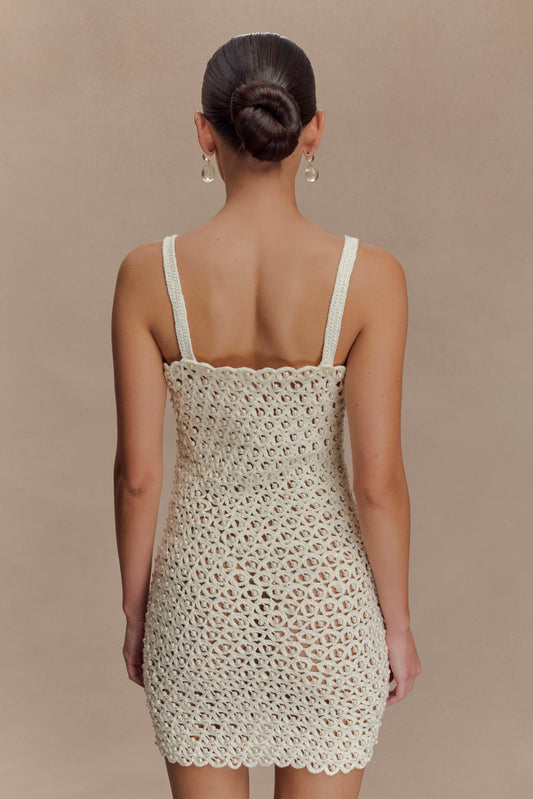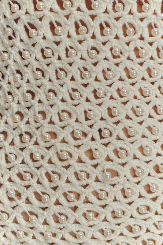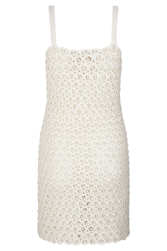 Hand Crochet Pearl Mini Dress - Ivory