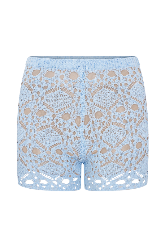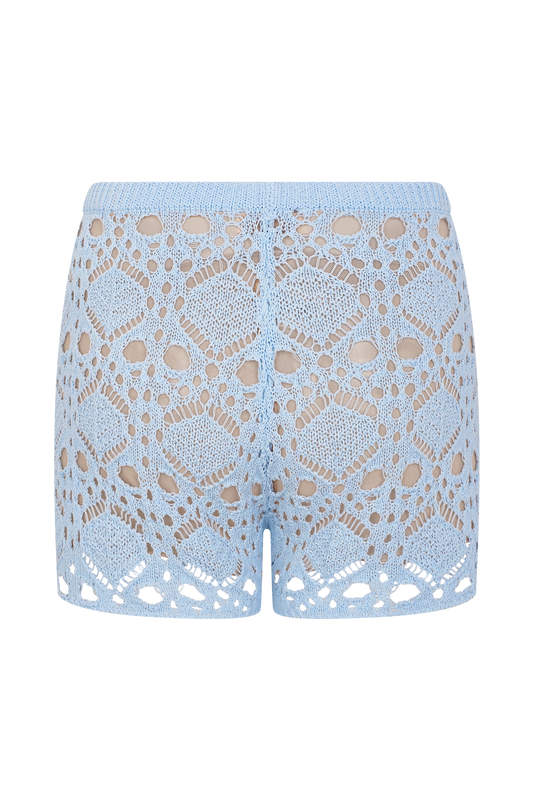Aeline Crochet Knit Shorts - Sky Blue