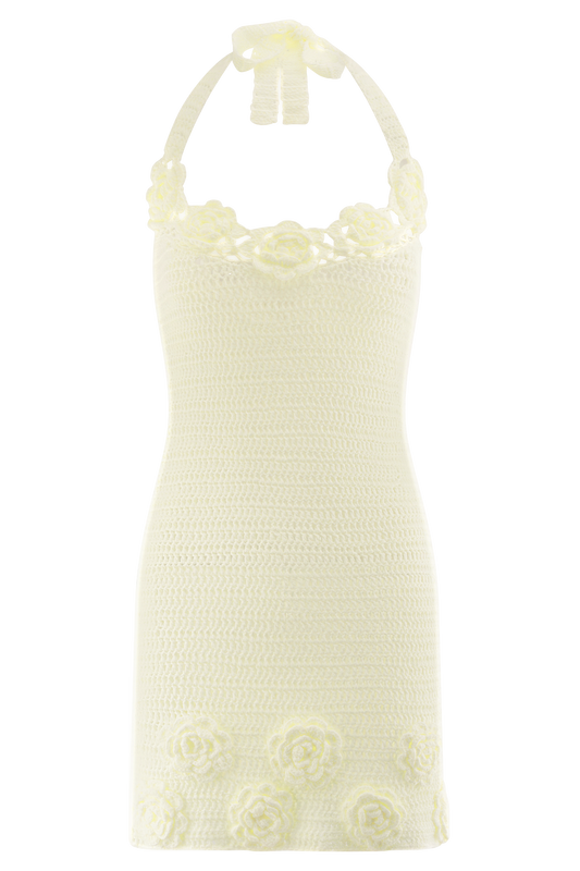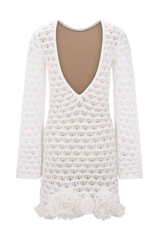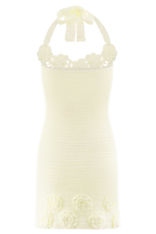 Floral Hand Crochet Mini Dress - Ivory