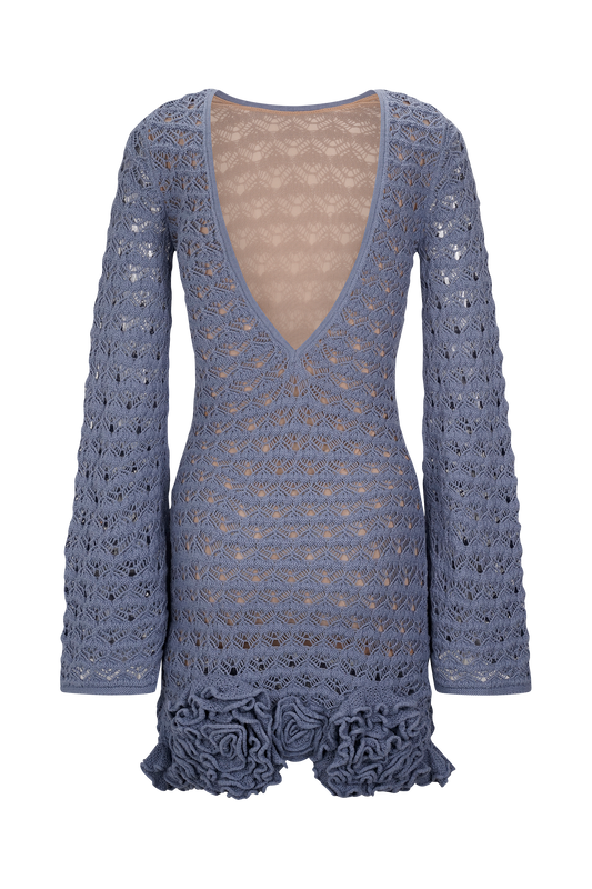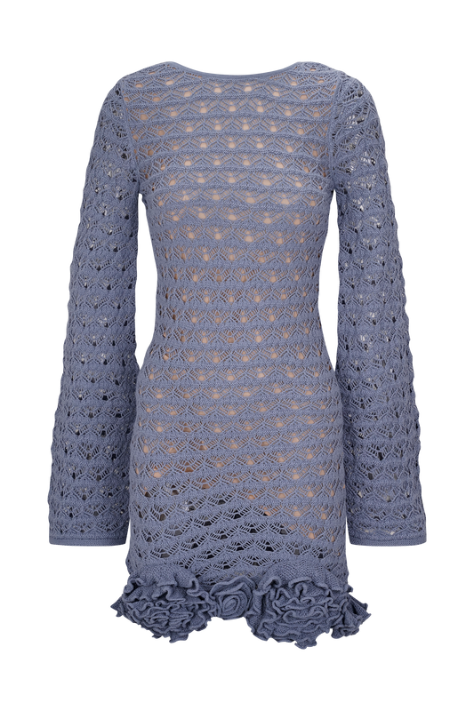 Aileen Ruffle Crochet Mini Dress - Steel Blue