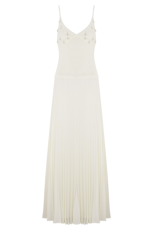 Catherine Crochet Pearl Maxi Dress - White