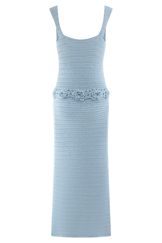 Teneika Crochet Knit Maxi Dress - Light Aqua