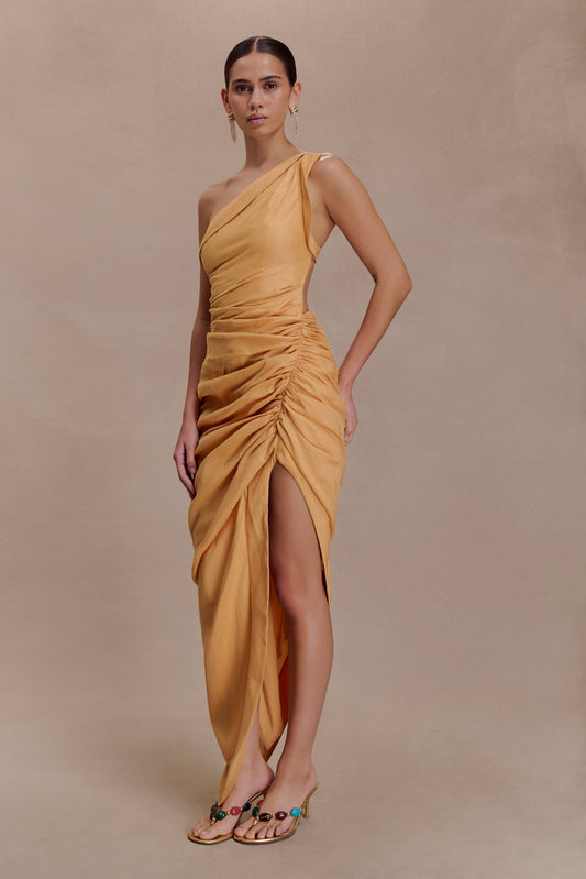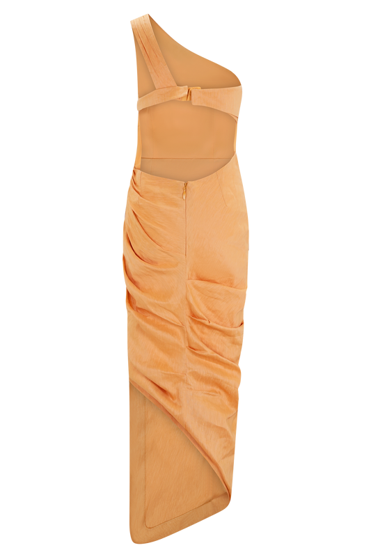 Birgit Linen Midi Dress With Hardware - Deep Peach