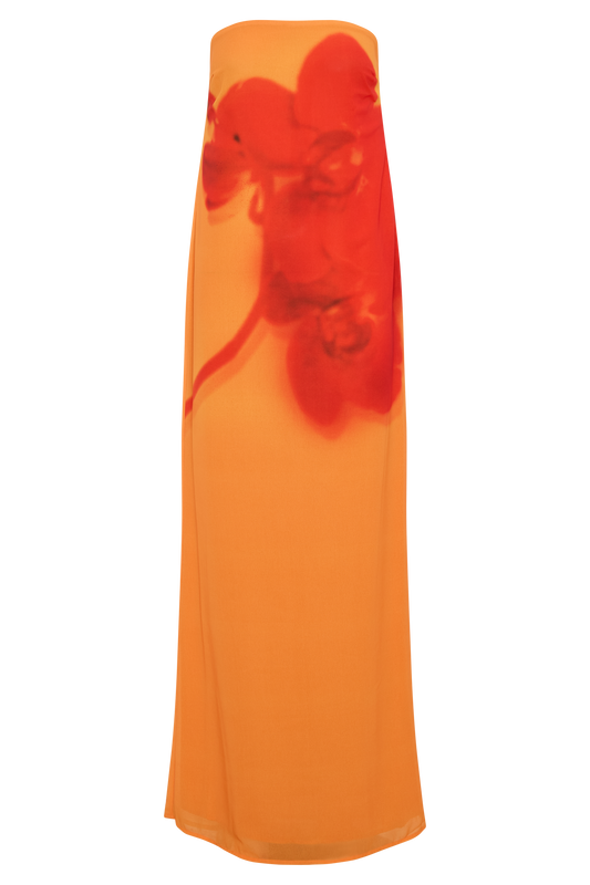 Amaya Strapless Chiffon Maxi Dress - Koi Orchid Print