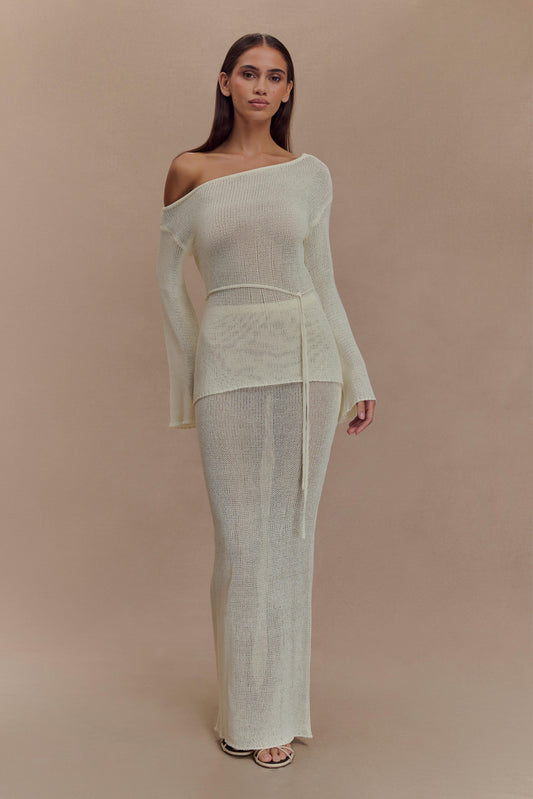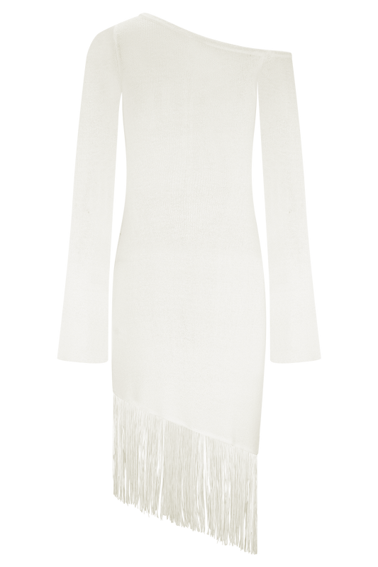 Kayden Fringe Off Shoulder Knit Mini Dress - Ivory