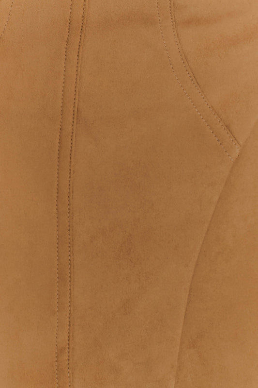 Faux Suede Belted Denim Mini Skirt - Indigo Blue