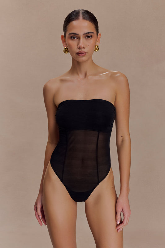 Tully Strapless Topstitch Denim Top - Indigo Blue