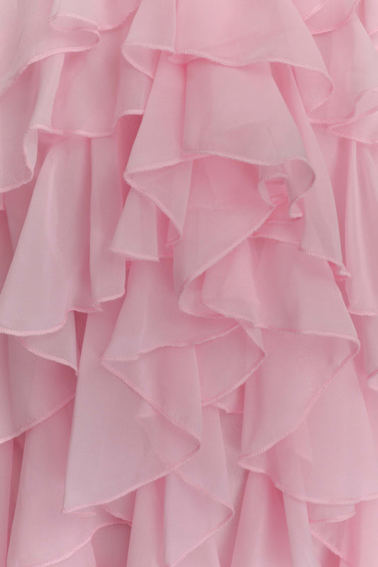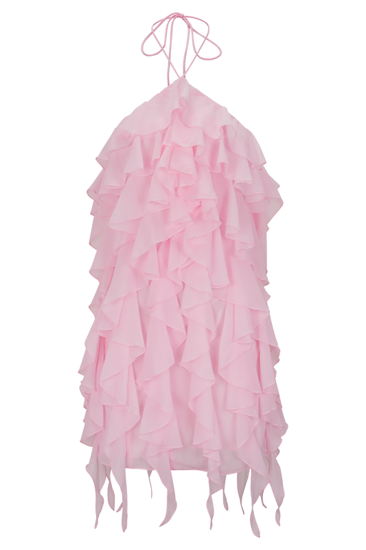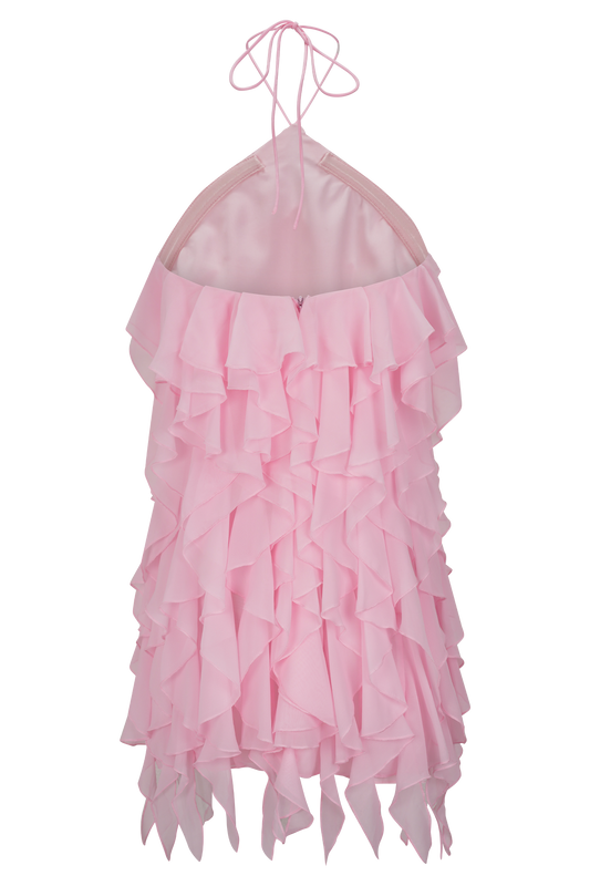 Marigold Ruffle Halter Mini Dress - Powder Pink