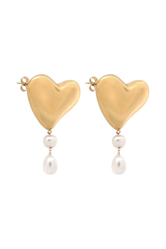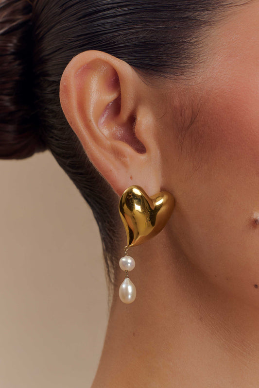 Kiara Heart Pearl Drop Earrings - Gold