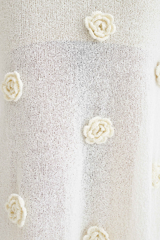 Off Shoulder Knit Rose Maxi Dress - Ivory