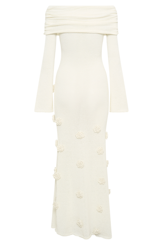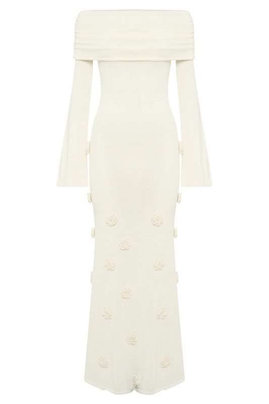 Kiki Off Shoulder Knit Rose Maxi Dress - Ivory