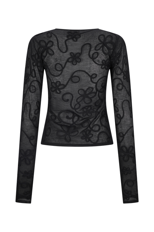 Paedyn Merino Wool Ribbed Long Sleeve Top - Black