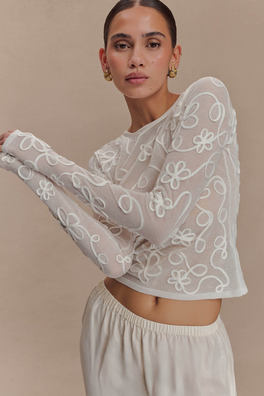 Maelle Off Shoulder Long Sleeve Top - Ivory
