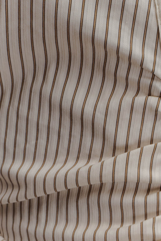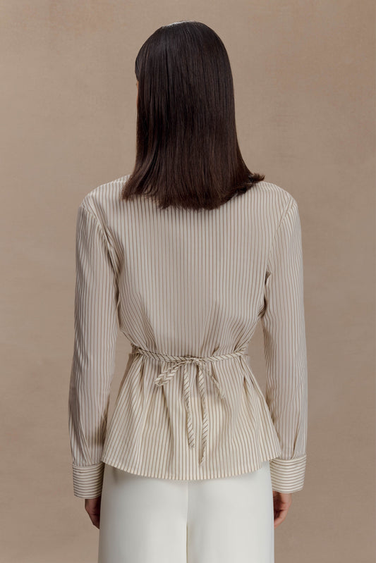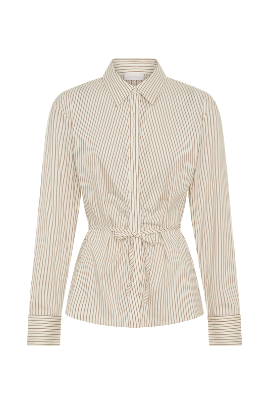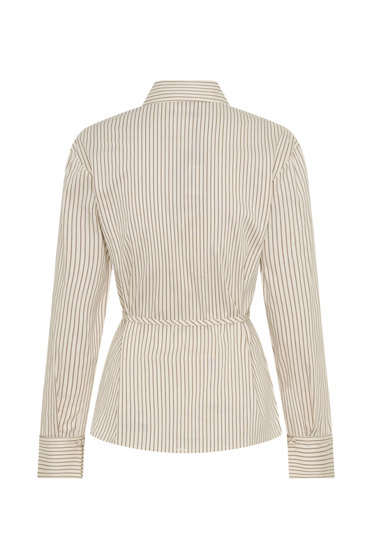 Millie Tie Back Cotton Shirt - Beige Pinstripe