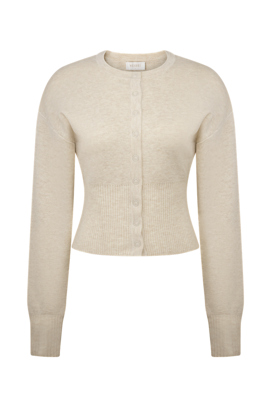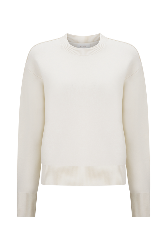 Merino Wool Ribbed Long Sleeve Top - Ivory