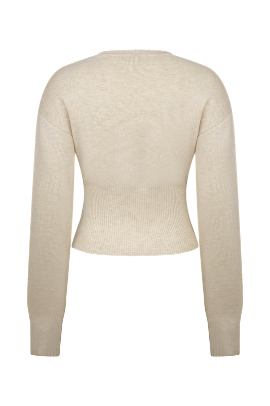 Paedyn Merino Wool Ribbed Long Sleeve Top - Ivory