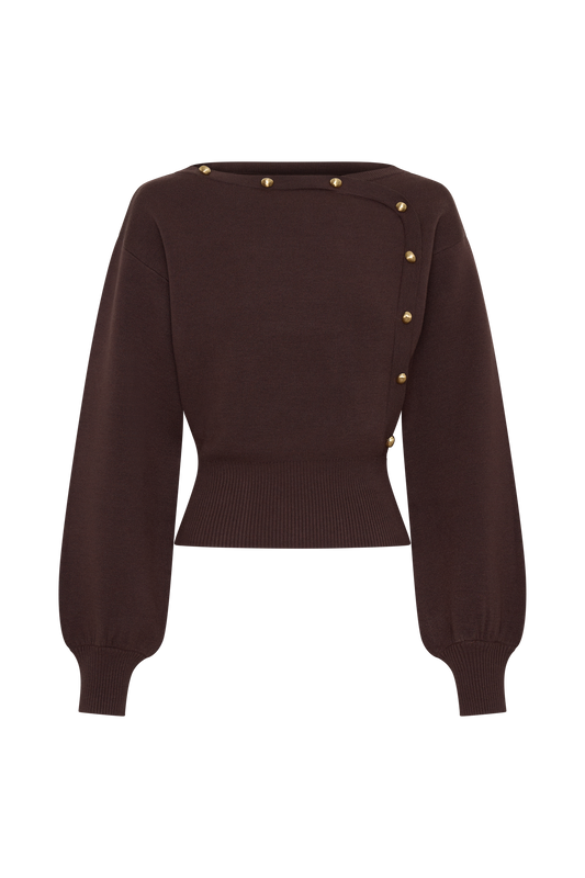 Mertyle Aysmetrical Knit Jumper - Deep Chocolate